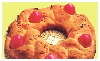 {"ops":[{"insert":"12 envelopes active dry yeast"},{"attributes":{"list":"bullet"},"insert":"\n"},{"insert":"1 cup lukewarm milk"},{"attributes":{"list":"bullet"},"insert":"\n"},{"insert":"1 teaspoon sugar"},{"attributes":{"list":"bullet"},"insert":"\n"},{"insert":"1 cup (1 stick) butter"},{"attributes":{"list":"bullet"},"insert":"\n"},{"insert":"2/3 cup sugar"},{"attributes":{"list":"bullet"},"insert":"\n"},{"insert":"1 tablespoon grated lemon rind"},{"attributes":{"list":"bullet"},"insert":"\n"},{"insert":"1 teaspoon aniseed"},{"attributes":{"list":"bullet"},"insert":"\n"},{"insert":"1 teaspoon salt"},{"attributes":{"list":"bullet"},"insert":"\n"},{"insert":"1 cup scaled milk"},{"attributes":{"list":"bullet"},"insert":"\n"},{"insert":"4 eggs, beaten"},{"attributes":{"list":"bullet"},"insert":"\n"},{"insert":"6 cups all-purpose flour"},{"attributes":{"list":"bullet"},"insert":"\n"},{"insert":"2 cups currants"},{"attributes":{"list":"bullet"},"insert":"\n"},{"insert":"5 hard boiled eggs, dyed red with food coloring"},{"attributes":{"list":"bullet"},"insert":"\n"}]}